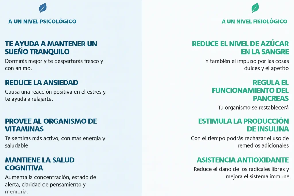 Ayuda a prevenir el daño celular, fortalece los vasos sanguíneos. Ayuda a normalizar el azúcar y el colesterol en al sangre. Puede ayudar a aliviar los síntomas de falta de aliento y aumentar la vitalidad general.